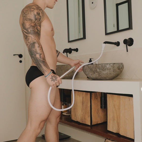 Most people douche 30–60 minutes before. A gentle rinse with the right pressure keeps you clean without irritation.